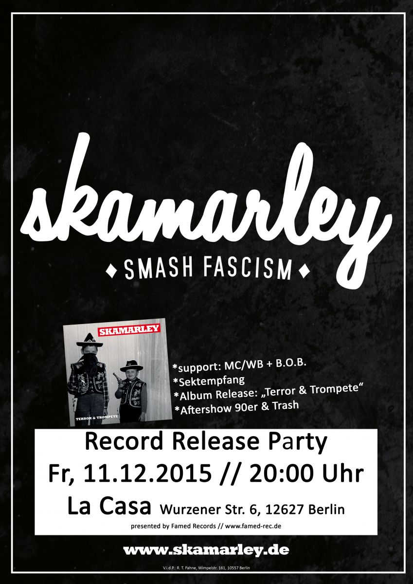 Die Band Skamarley bringt ihr erstes Album (Terror & Trompete) raus. Das wird ordentlich gefeiert.